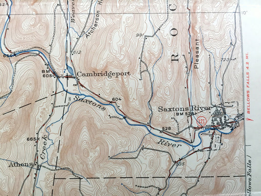 Antique Saxtons River, Vermont 1933 US Geological Survey Topographic Map – Grafton, Windham, Athens, Westminster, Townshend, Brookline, VT