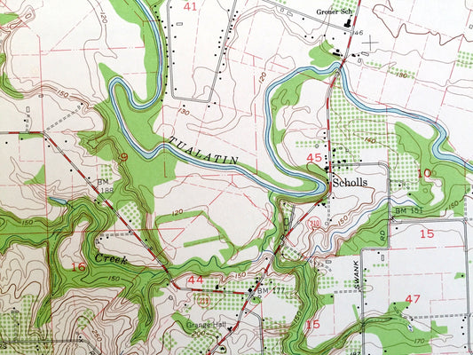 Antique Scholls, Oregon 1961 US Geological Survey Topographic Map – Yamhill, Washington County, Farmington, Reedville, Laurel, Kinton, OR
