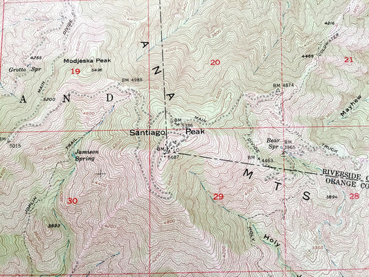 Antique Santiago Peak, California 1954 US Geological Survey Topographic Map – Riverside, Orange County, Trabuco Oaks, Canyon, Modjeska, CA