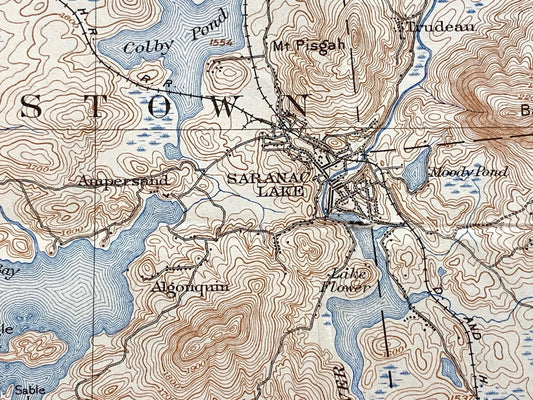Antique Saranac Lake, New York 1904 US Geological Survey Topographic Map – Adirondacks, Brighton, Franklin, Harrietstown, St Armand, Elba NY