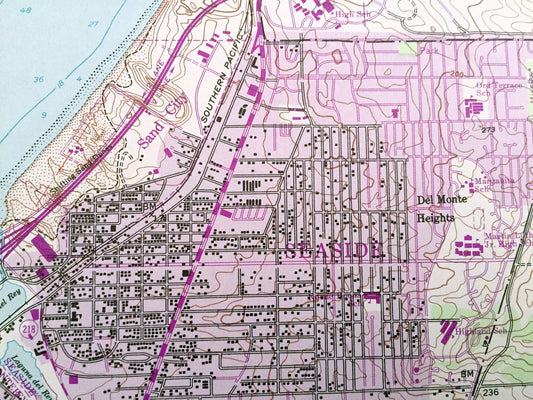 Antique Seaside, California 1947 US Geological Survey Topographic Map – Monterey Bay, Del Rey Oaks, Delmonte, Retreat Noche Buena Heights CA