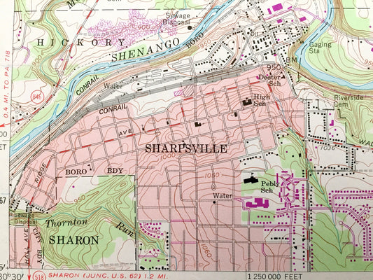 Antique Sharpsville, Pennsylvania 1958 US Geological Survey Topographic Map – Mercer County, South Pymatuning, West Salem, Shenango River PA