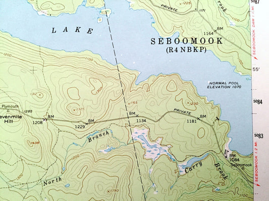 Antique Seboomook Lake, Maine 1954 US Geological Survey Topographic Map – Moosehead Lake, Piscataquis, Somerset County, Tomhegan, Pittston