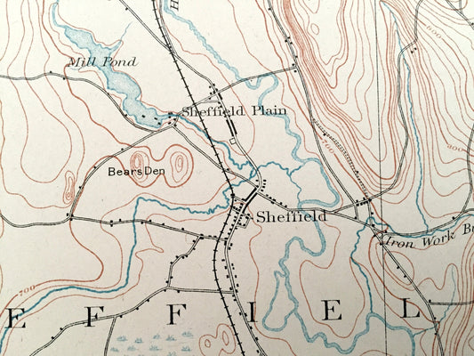 Antique Sheffield, Massachusetts 1885 US Geological Survey Topographic Map – Mount Washington, Great Barrington, Canaan, Berkshires MA CT ny