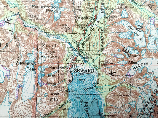 Antique Seward, Alaska 1953 US Geological Survey Topographic Map – Anchorage, Kenai National Park, Chugach, Mountains, Prince William, AK