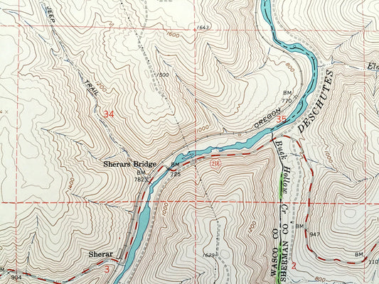 Antique Sherars Bridge, Oregon 1962 US Geological Survey Topographic Map – Wasco, Sherman County, Sherar, Tygh Ridge, Deschutes River, OR