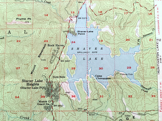 Antique Shaver Lake, California 1953 US Geological Survey Topographic Map – Madera, Fresno County, Sierra National Forest, Rock Haven, CA