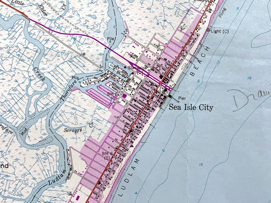 Antique Sea Isle City, New Jersey 1952 US Geological Survey Topographic Map – Cape May County, Dennis, Ocean City, Strathmere Shore Beach NJ