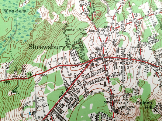 Antique Shrewsbury, Massachusetts 1953 US Geological Survey Topographic Map – Boylston, Berlin, Northborough, Westborough, Fairlawn