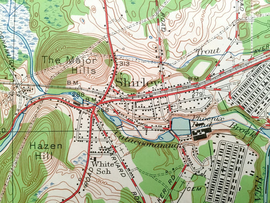 Antique Shirley, Massachusetts 1950 US Geological Survey Topographic Map – Lancaster, Leominster, Lunenburg, Townsend, Groton, Fort Devens