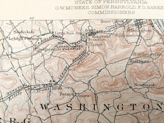 Antique Slatington, Pennsylvania 1902 US Geological Survey Topographic Map – Lehigh County, Heidelberg, Whitehall, Salisbury, Lowhill, Allen