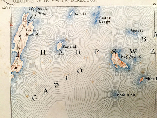 Antique Small Point, Maine 1893 US Geological Survey Topographic Map – Harpswell, Phippsburg, Cliffstone, Popham Beach, Cumberland, Casco ME