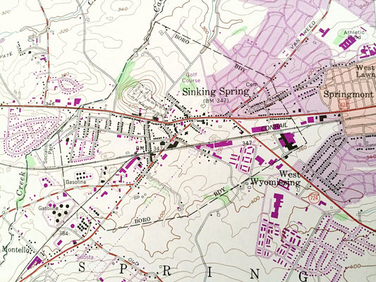 Antique Sinking Spring, Pennsylvania 1955 US Geological Survey Topographic Map – Berks, Lancaster County, Heidelberg, Wernersville, PA