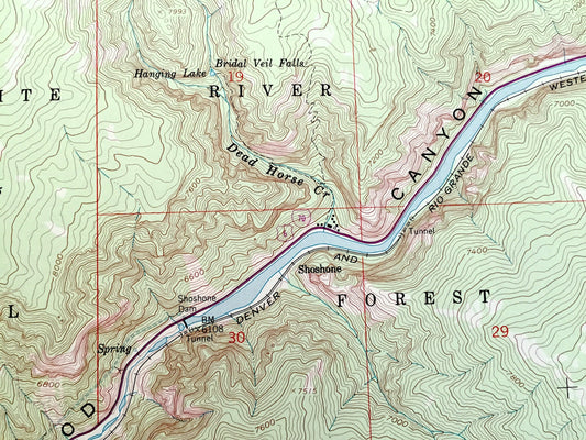 Antique Shoshone, Colorado 1961 US Geological Survey Topographic Map – White River National Forest, Glenwood Canyon, Colorado River, CO