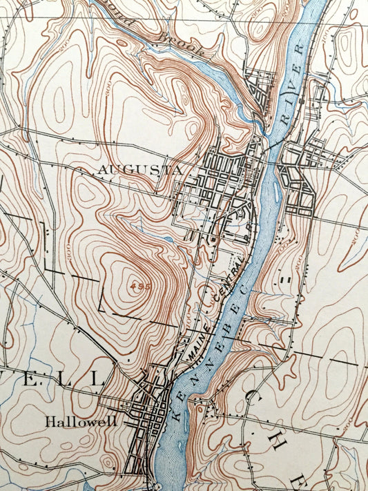 Antique Augusta, Maine 1892 US Geological Survey Topographic Map – Hallowell, Winthrop, Farmington Belgrade Sidney Readfield Mount Vernon ME