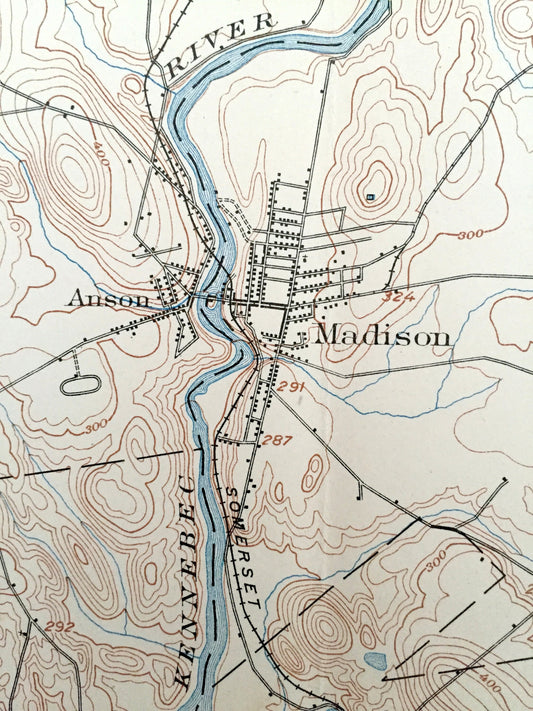 Antique Anson, Maine 1904 US Geological Survey Topographic Map – Somerset County, Madison, Bingham, Embden, Adison, Stark, Hayden Lake, ME