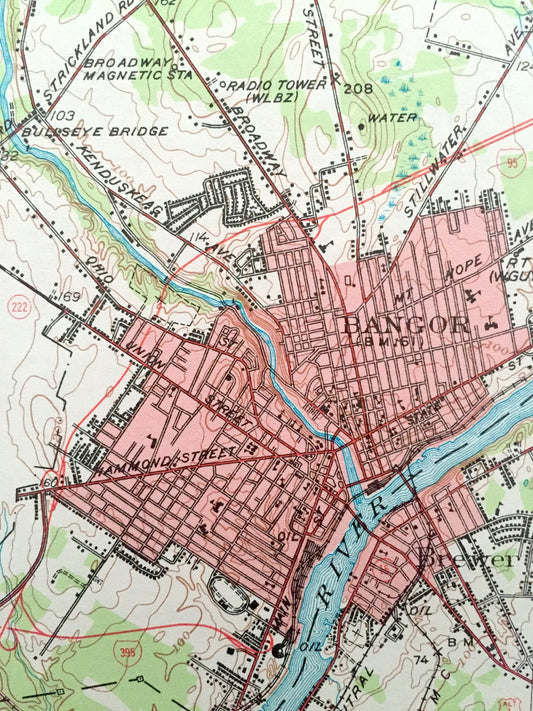 Antique Bangor, Maine 1955 US Geological Survey Topographic Map – Brewer, Hampden, Hermon, Orono, Pushaw Lake, Old Town, Penobscot County ME