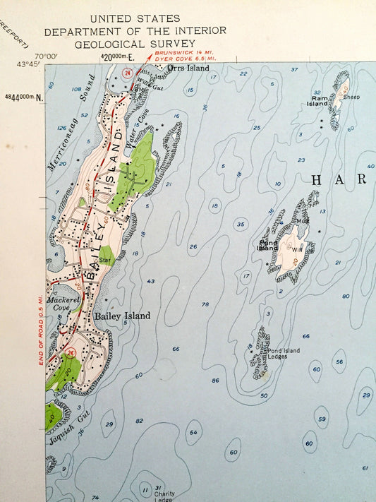 Antique Bailey Island, Maine 1957 US Geological Survey Topographic Map – Sagadahoc, Cumberland County, Harpswell, Phippsburg, Casco Bay, ME