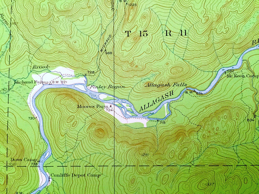 Antique Allagash Falls, Maine 1932 US Geological Survey Topographic Map – Aroostook County, Michaud Farm, WELS, Musquacook, McGargle Rocks