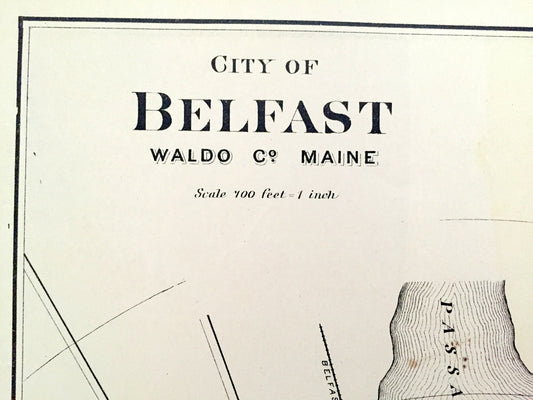 Antique 1887 Belfast, Maine Map by George N. Colby & Company – Waldo County, Passagassawakeag River, Washington, Calais, Vanceboro, ME