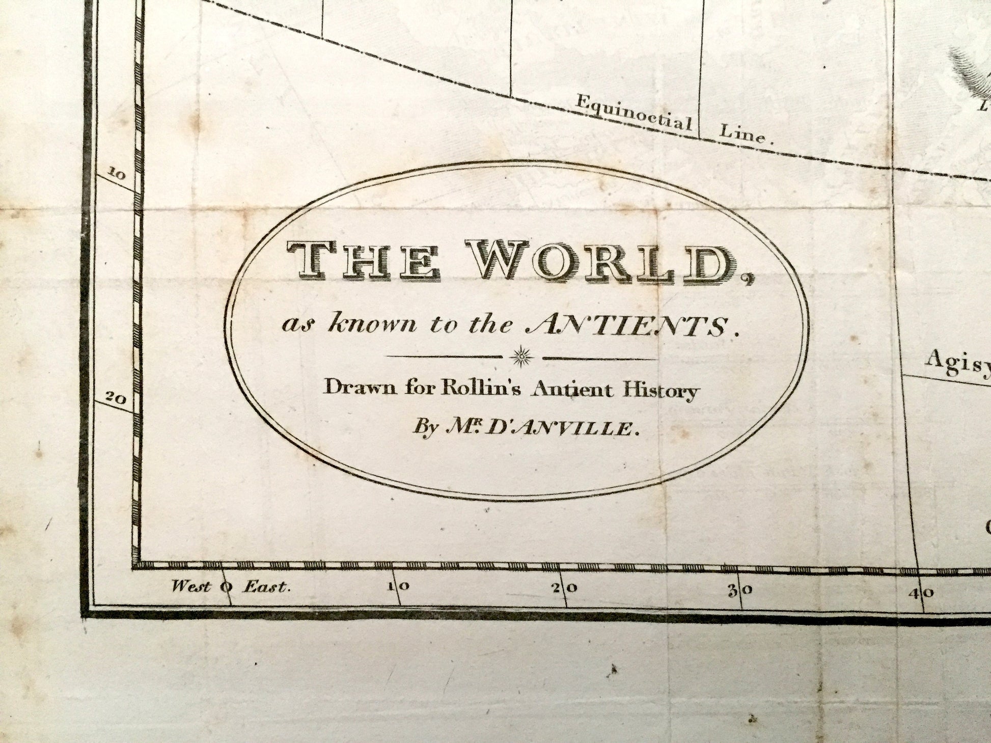 Antique 1808 World As Known to the Ancients Map by D'Anville from Rollins' Ancient History – Turkey Syria Greece Africa Europe Asia Italy