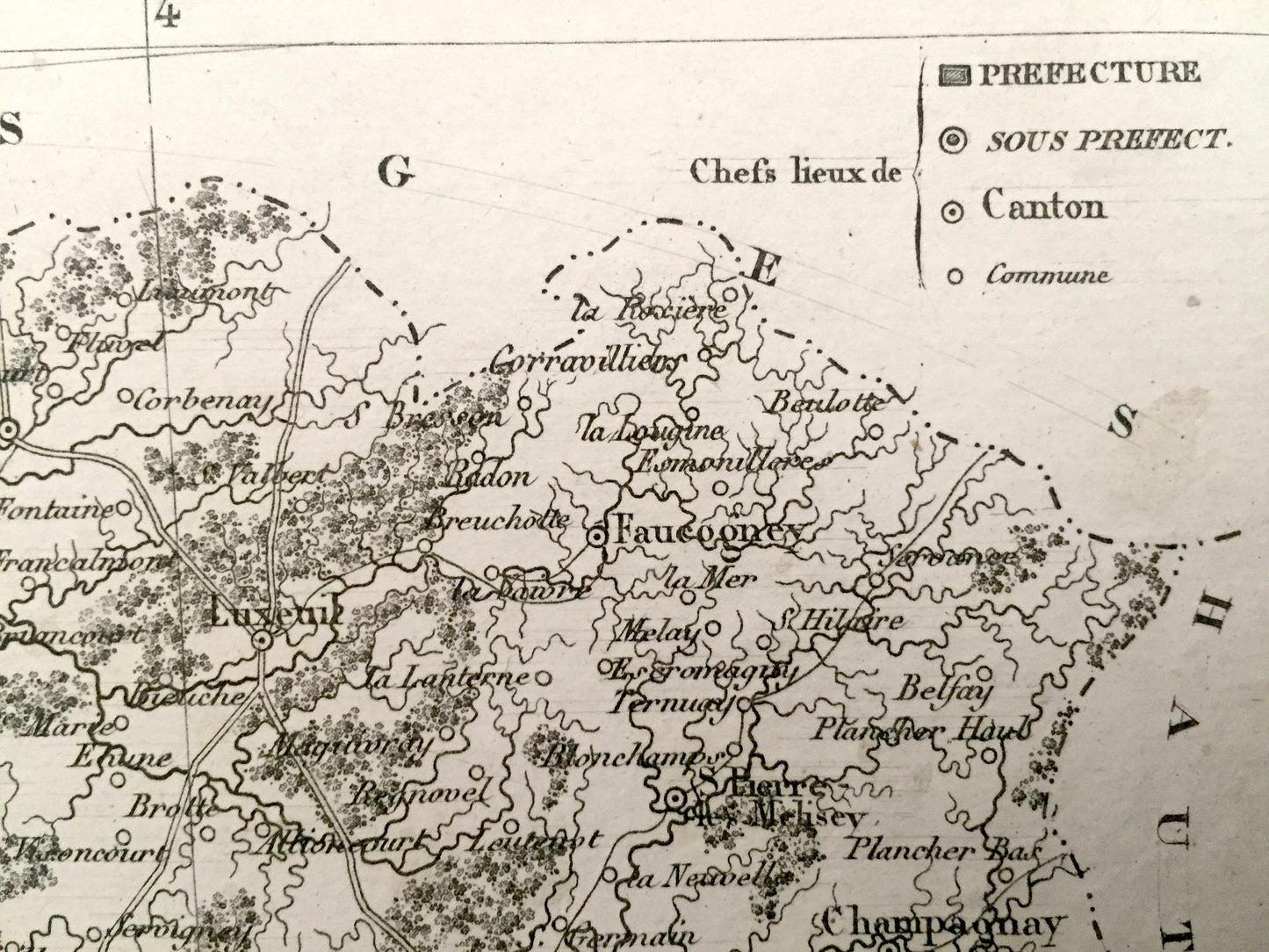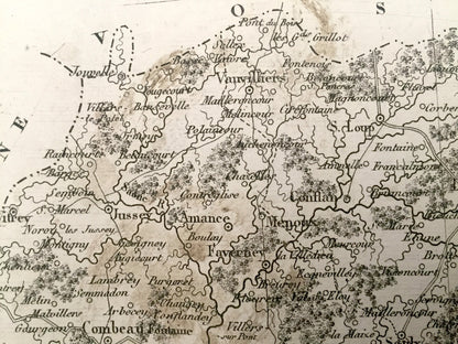 Antique 1833 Haute-Saône Department, France Map from Petit Atlas National by V. Monin – Haute-Saone, Bourgogne-Franche-Comté Region
