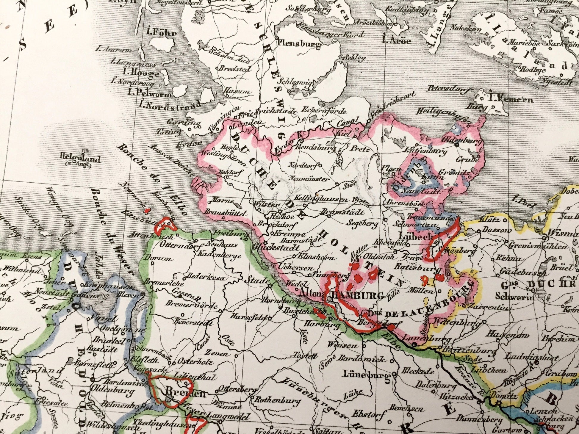 See what the states of the German Confederation looked like during the early nineteenth century. Lots of charming, intricate details and contours, including mountains, islands, counties, rivers and tribal areas. Hand colored. Verso is blank.