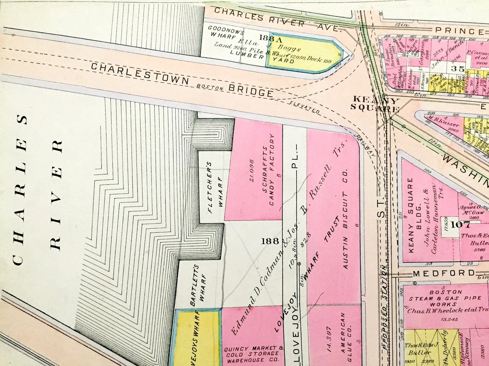 Cities, Neighborhoods & Points of Interest: Boston, Charles River, North End, West End, Haymarket Square, Keany Square, Warren Square, Union Station, North Station, Charles River Bridge and many other streets, houses, churches, schools, wharves and land property owners' names.