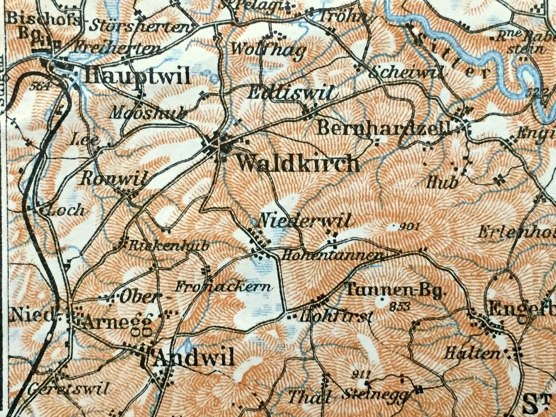 See what Switzerland looked like over 100 years ago. Lots of charming, intricate details and geological contours, including roads, rivers, mountains, train stations, gardens, towers, churches and other landmarks and points of interest.