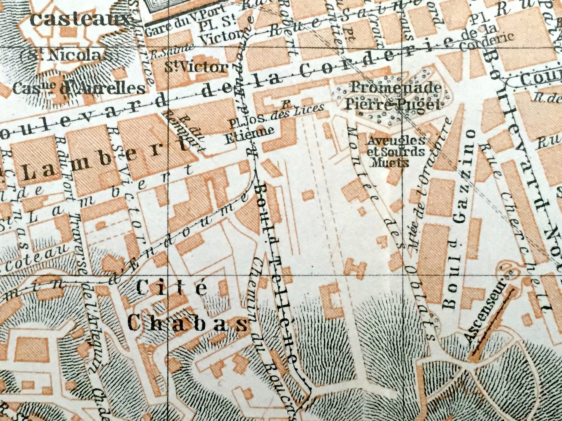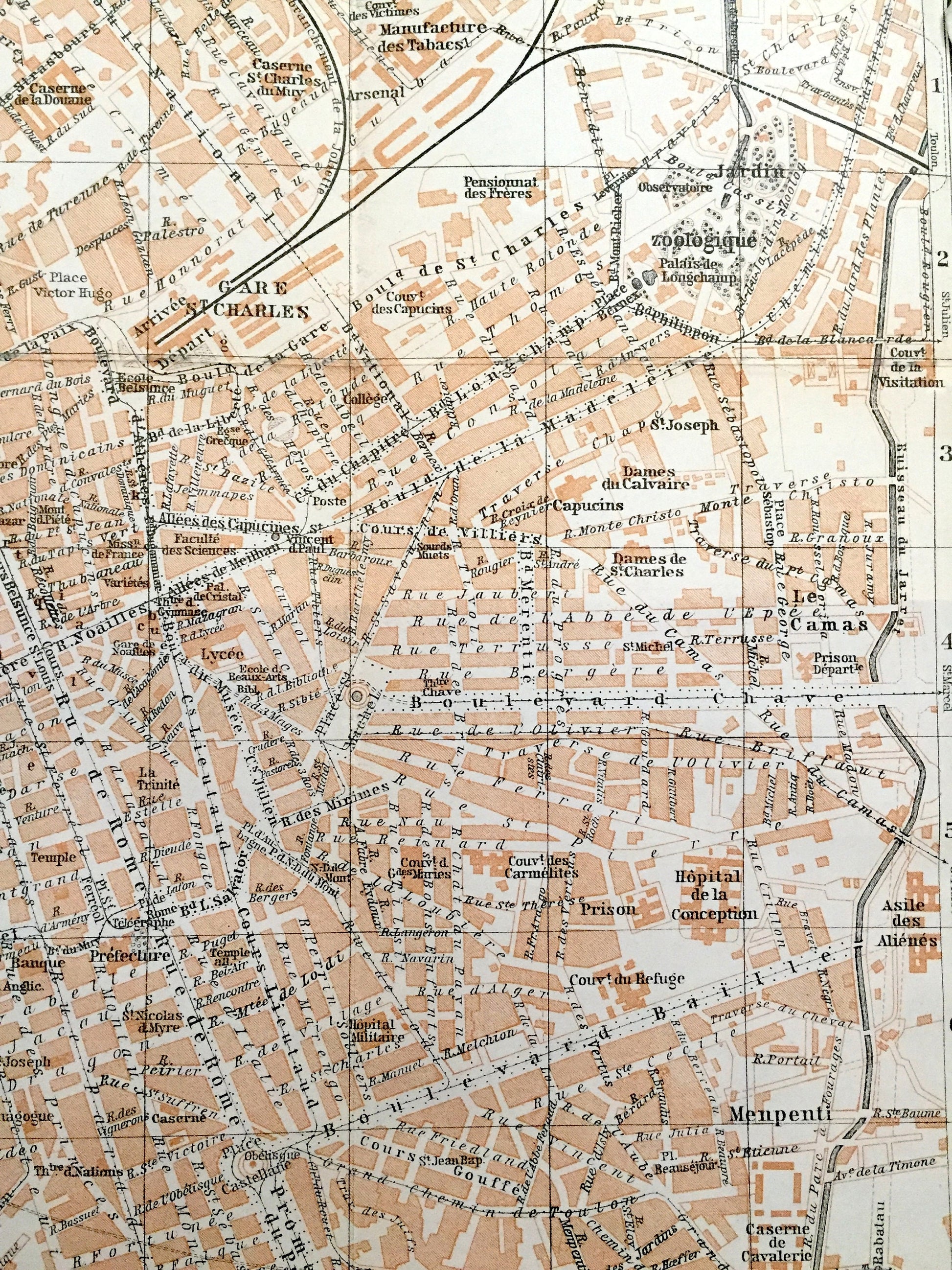 Antique 1914 Marseille, France Map from Baedekers Guide Atlas – Mediterranean, Boulevard, Bouches-du-Rhone, Provence-Alpes-Cote d'Azur, City