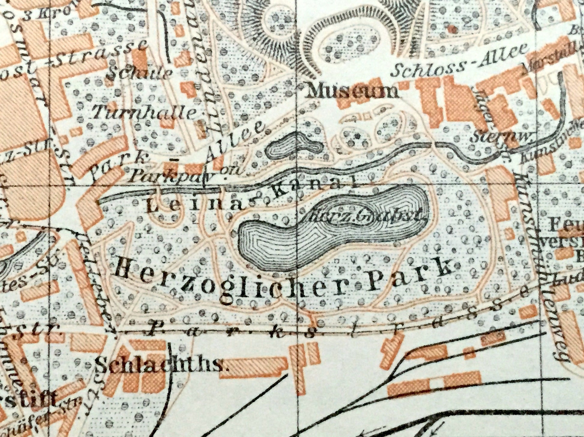 Antique 1925 Gotha, Germany Map from Baedekers Guide Atlas – Thuringia, Ernestine Wettins, European royals royalty, Middle Ages, Via Regia