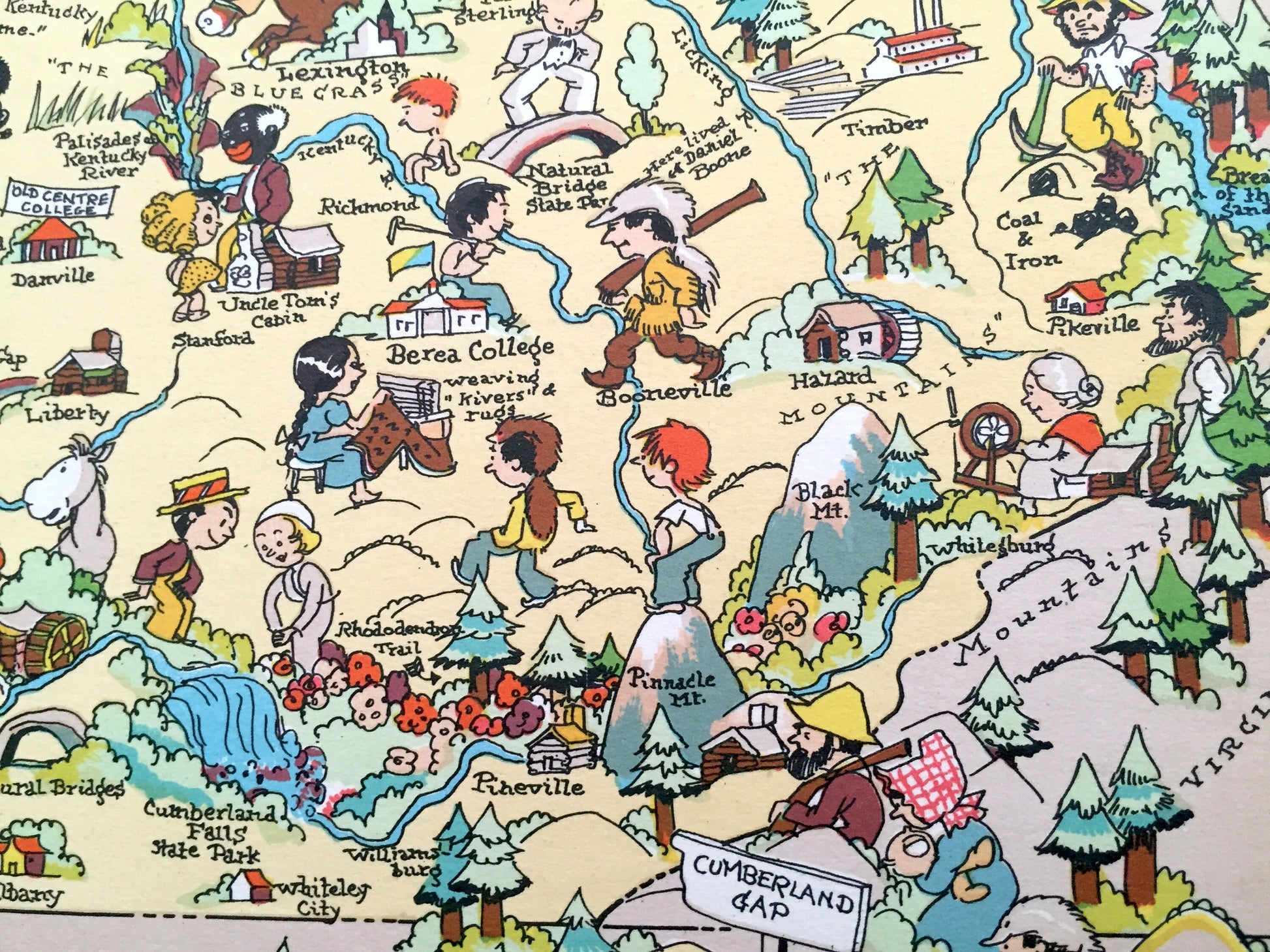 Beautiful, antique map of Kentucky from "Our Gay Geography" by Frank & Ruth Taylor, published in 1935. This is an authentic print removed from the atlas and is NOT a computer reproduction.
