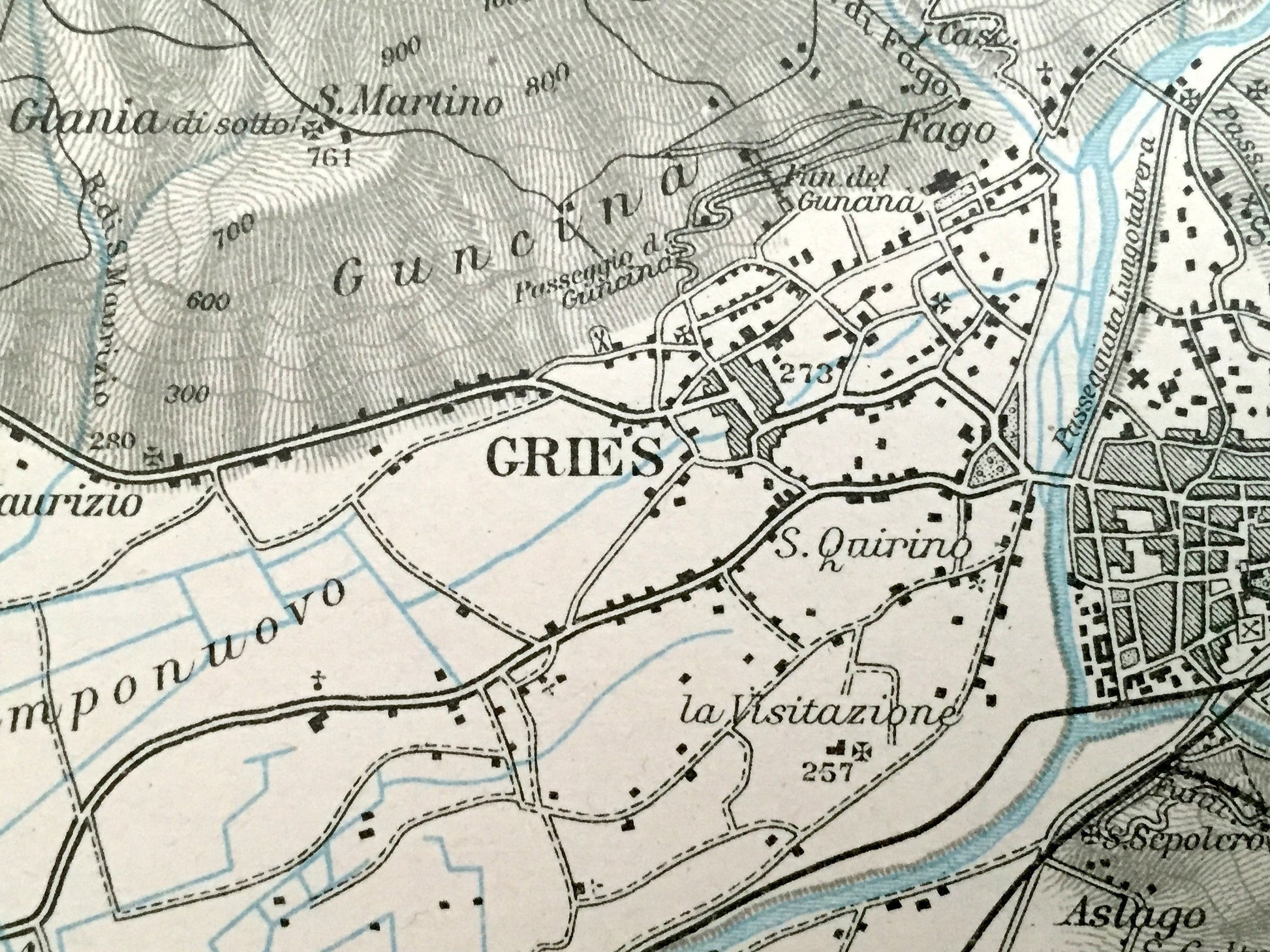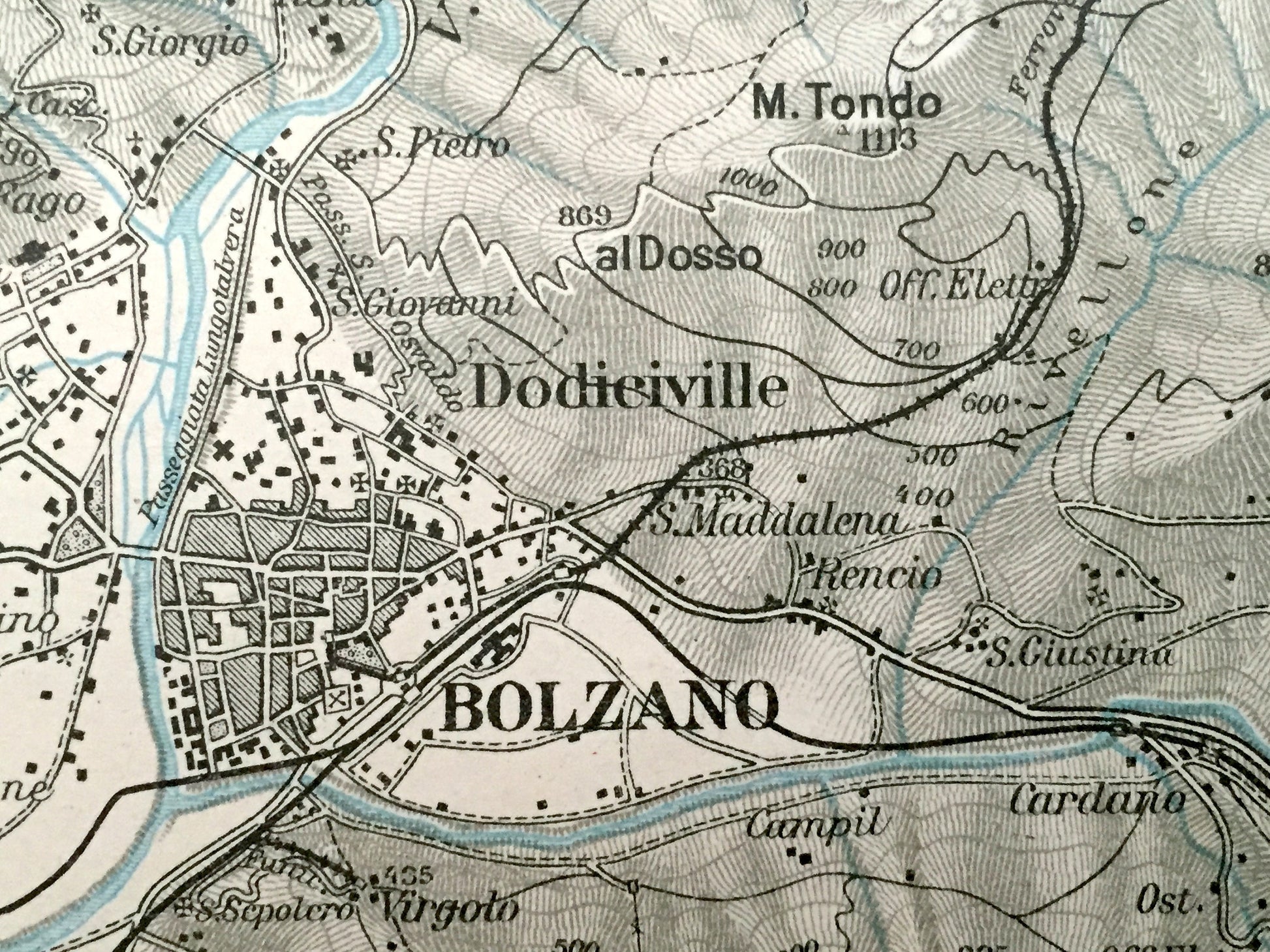 Antique 1937 Bolzano, Italy Map from Muirhead's Blue Guides & Baedekers – South Tyrol, Gries, Dodieiville, Cornedo, Vanga, Bozen, Quirino