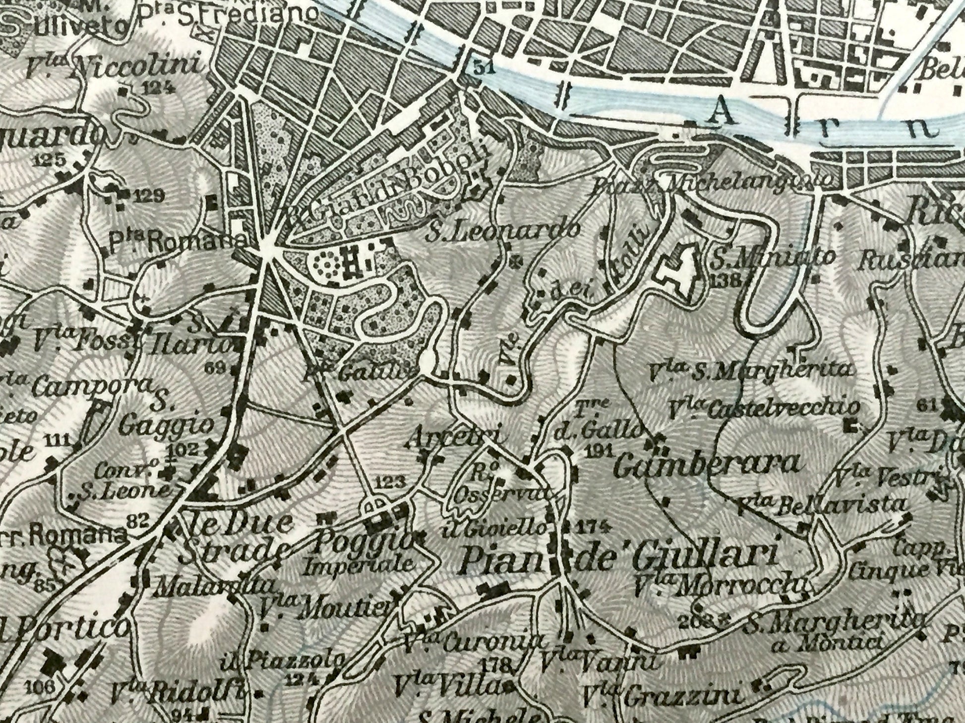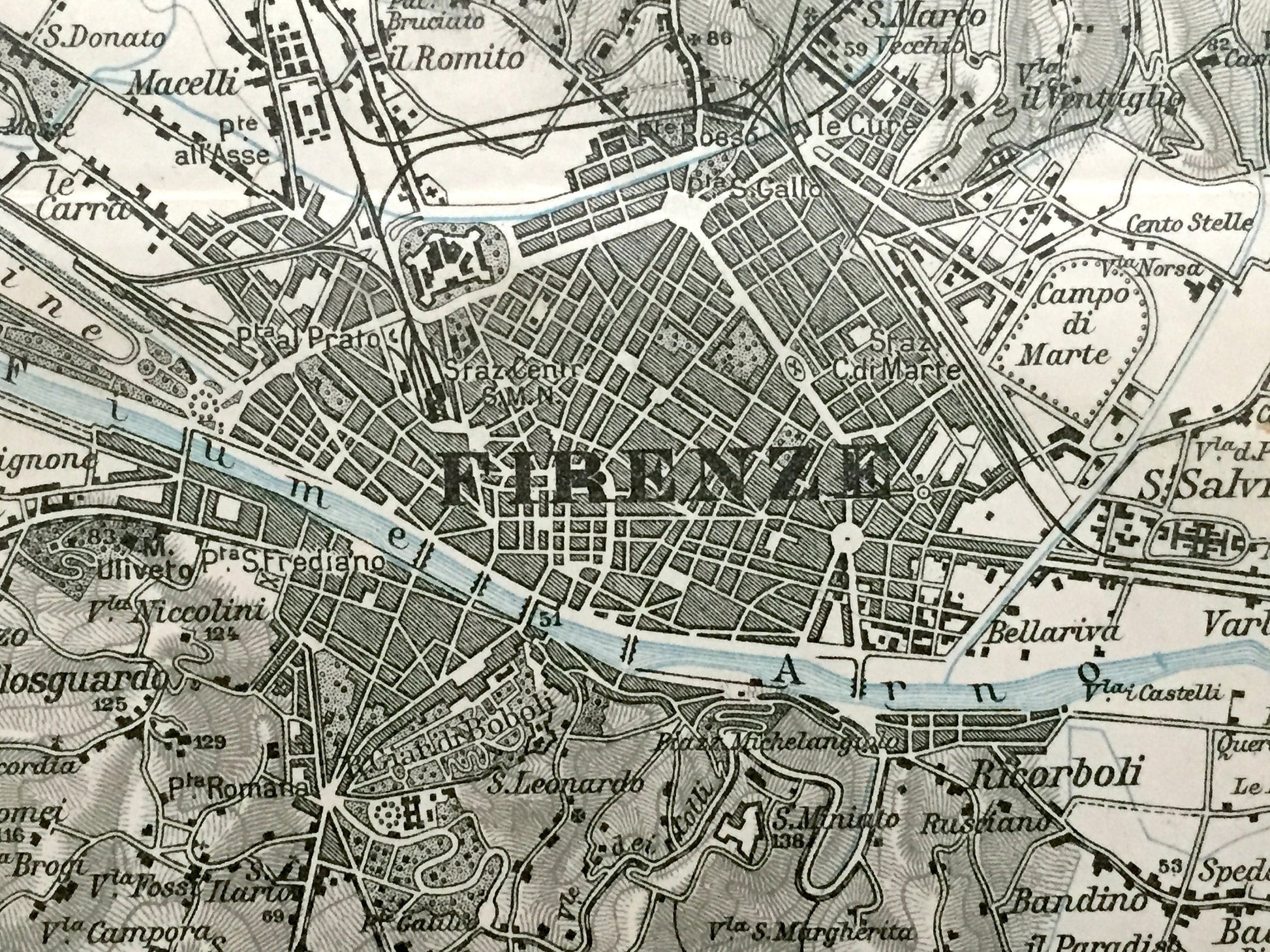 Antique 1937 Florence, Italy Map from Muirhead's Blue Guides & Baedekers – Firenze, Tuscany, Arno, Ponte Vecchio, Uffizi, Fiesole, Sesto