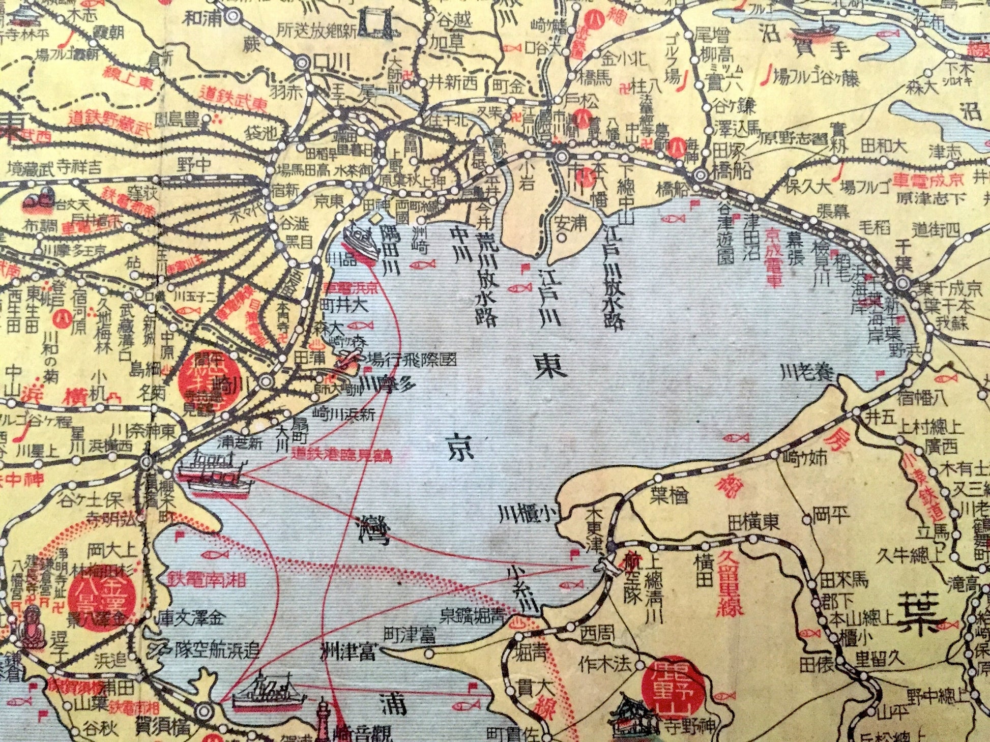 Antique 1940s Japan WWII-era Map – Tokyo, Yokohama, Chiba, Shizuoka, Kanagawa, Mount Fuji, Kawasaki Nagano Niigata Gunma Saitama Kofu Numazu