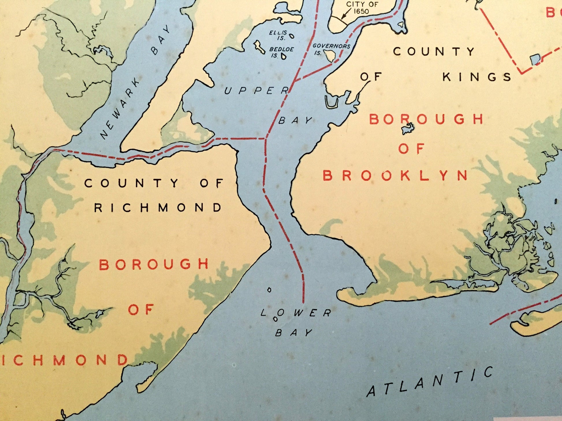 Antique 1941 New York City Borough Map from WP Munger's Historical Atlas of New York State – Manhattan, Brooklyn, Queens, New Amsterdam, NYC