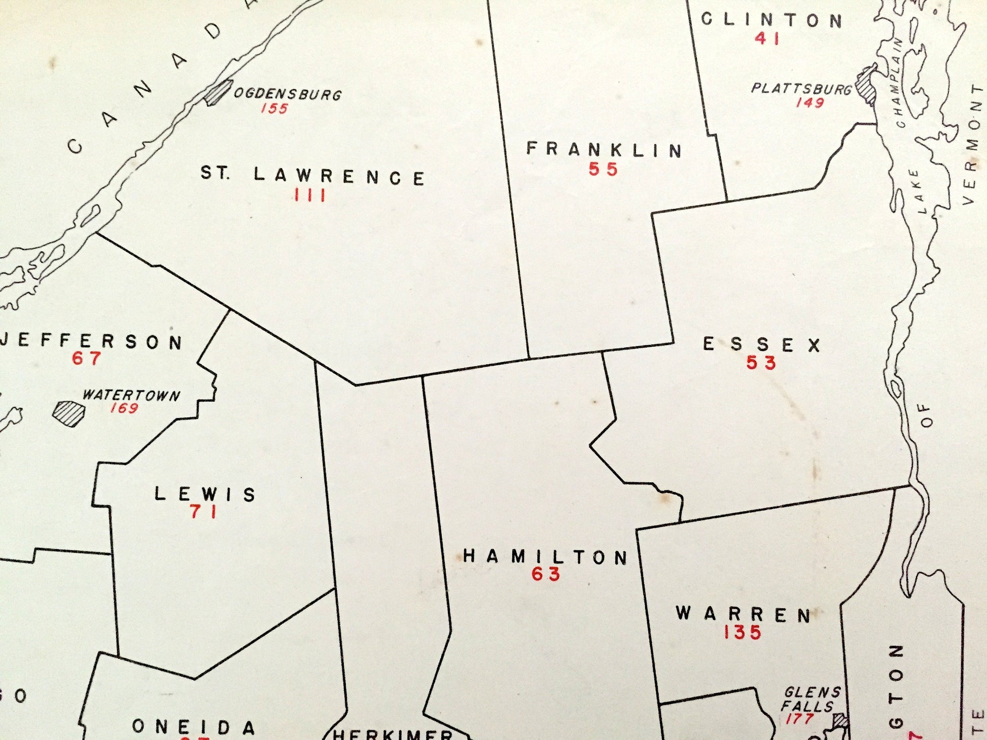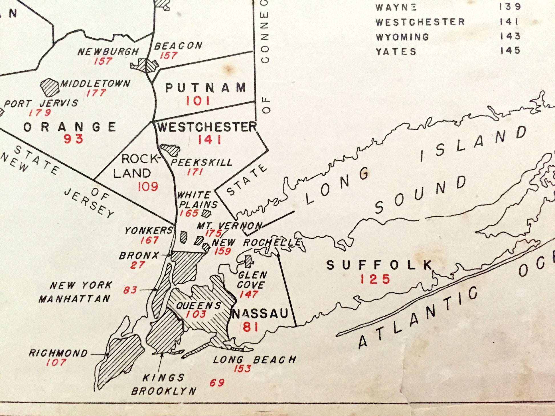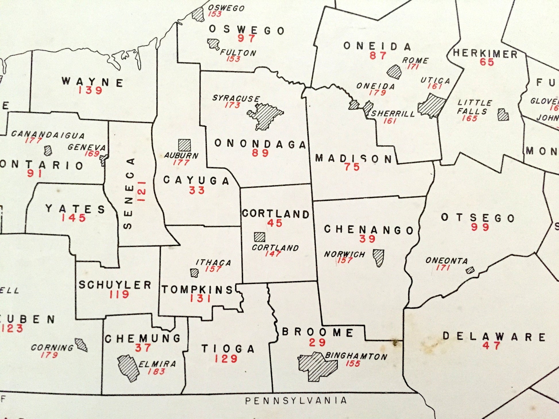 Antique 1941 New York County Map from WP Munger's Historical Atlas of New York State – Albany, Manhattan, Long Island, Adirondacks, NYC NY