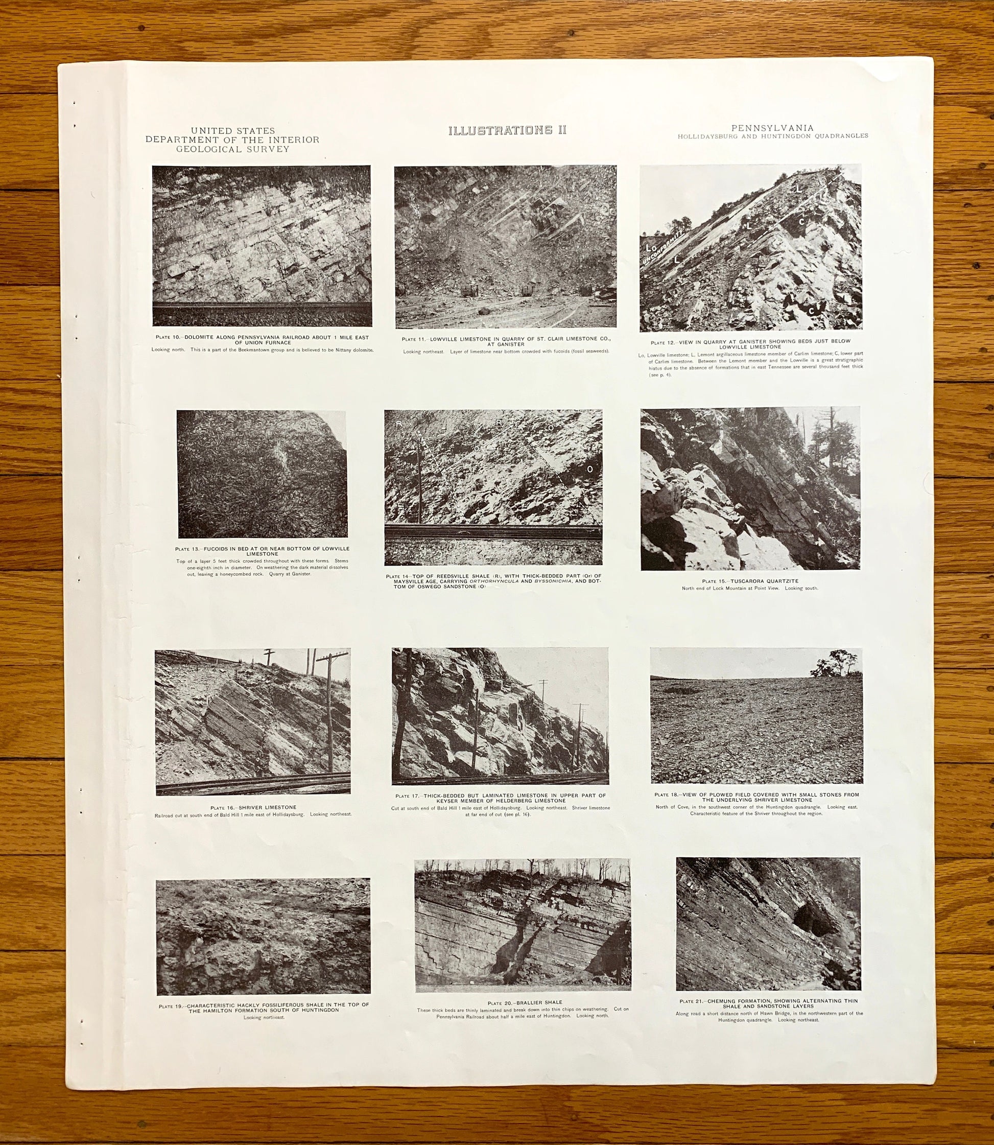 Beautiful, antique set of three plates of photographs of various rock formations of Huntingdon and Hollidaysburg, Pennsylvania and surrounding Huntingdon County area. These are authentic 1945 edition, 1945 prints from the U.S. Geological Survey and NOT computer reproductions.