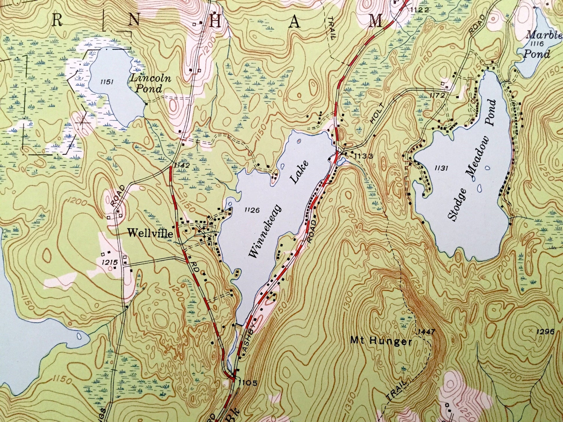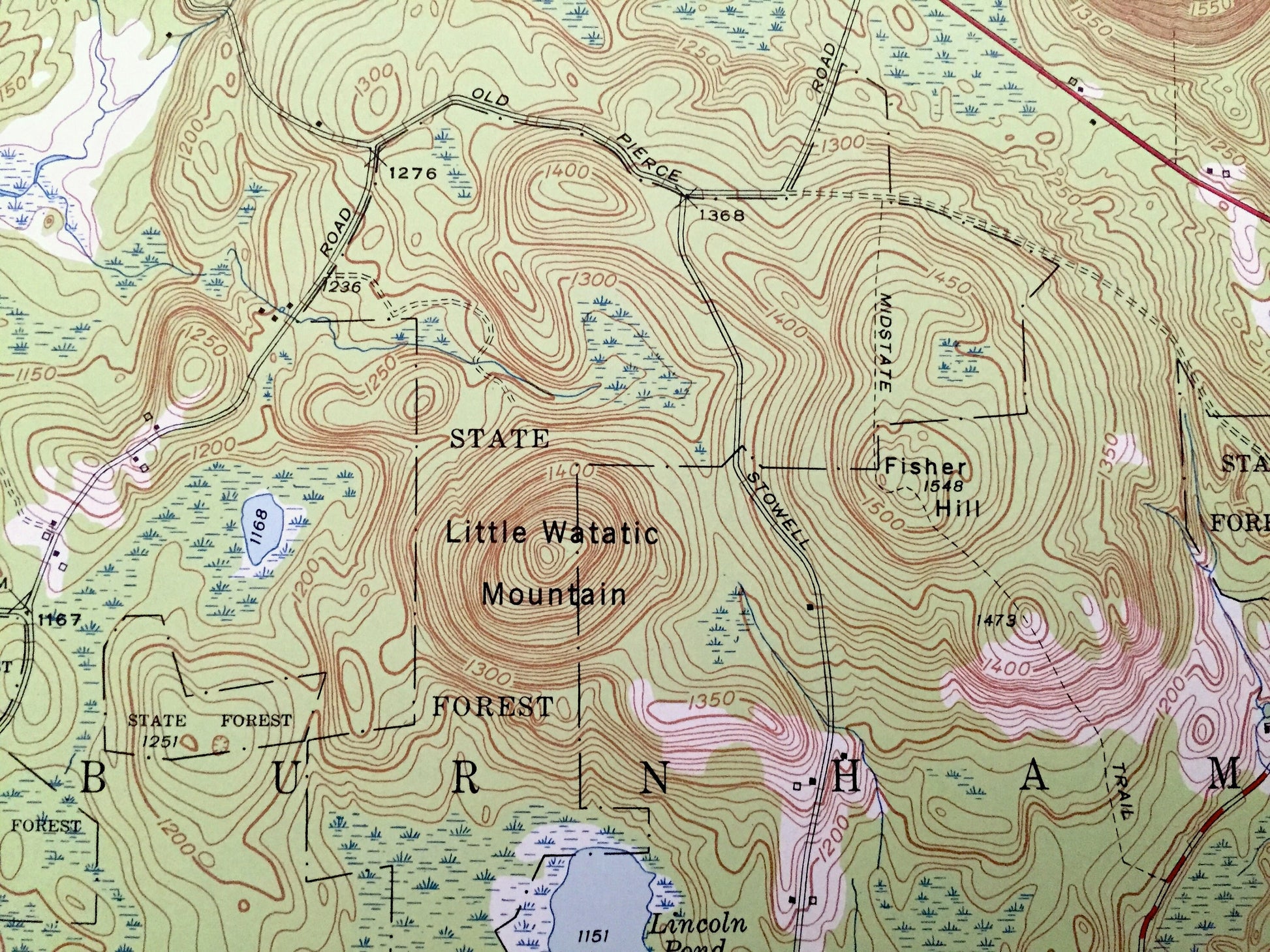 Points of Interest: State Forest, Griswald Hill, Bonney Hill, Emerson Hill, Watatic Mountain, Fisher Hill, Town Line Hill, Mt Hunger, New Ipswich Mountain, Pratt Mountain, Lake Monomonac, Converse Meadow Pond, Island Pond, Wallace Pond, Lower Naukeag Lake, Upper Naukeag Lake, Winnekeag Lake, Stodge Meadow Pond, Lake Wampanoag, Ward Pond, Millers River, Bear Meadow Brook, Bluefield Brook, Phillips Brook, and many more hills, streams, ponds, houses, schools, railroads, churches and roads.
