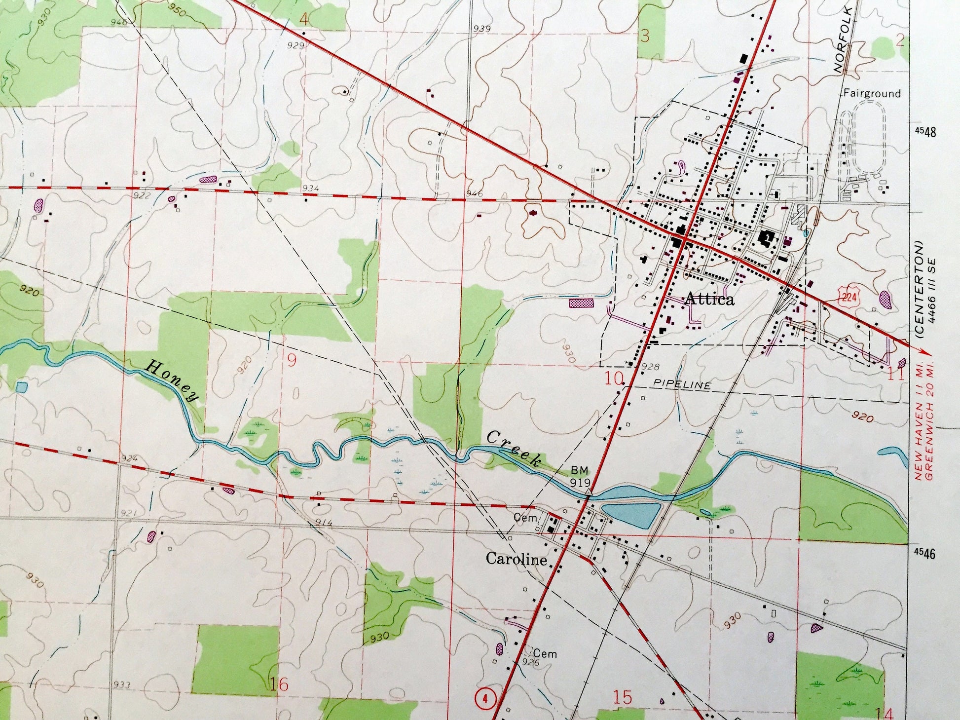 Beautiful, antique map of Attica, Ohio and surrounding Seneca County area. This is an authentic 1960 edition, 1973 print from the U.S. Geological Survey and NOT a computer reproduction.