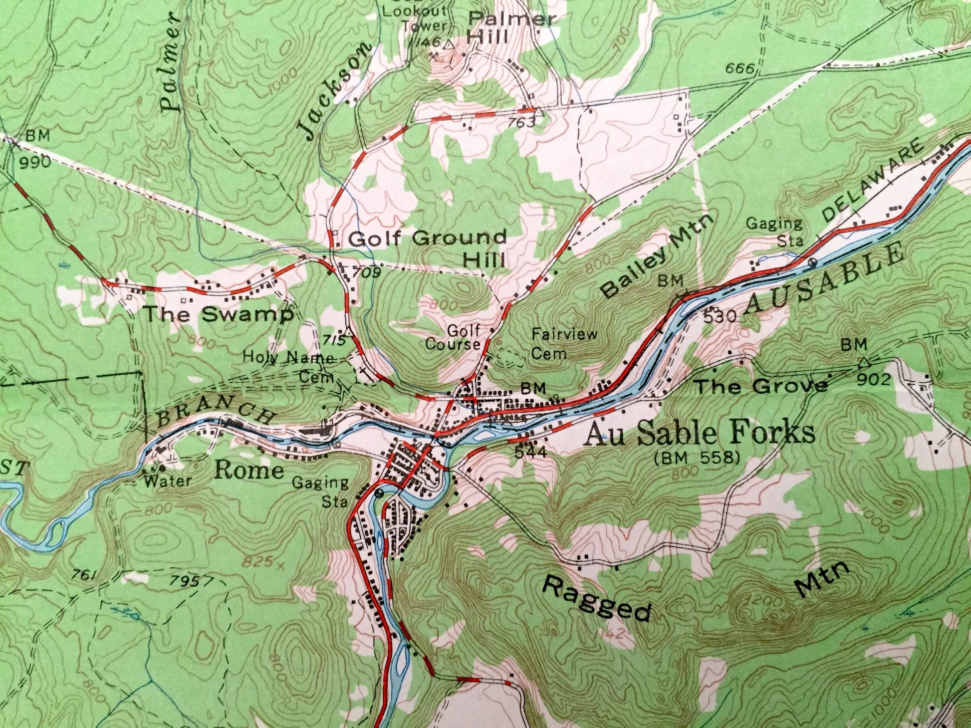 Beautiful, antique map of Au Sable Forks, New York and surrounding Clinton & Essex County areas. This is an authentic 1953 edition, 1967 print from the U.S. Geological Survey and NOT a computer reproduction.