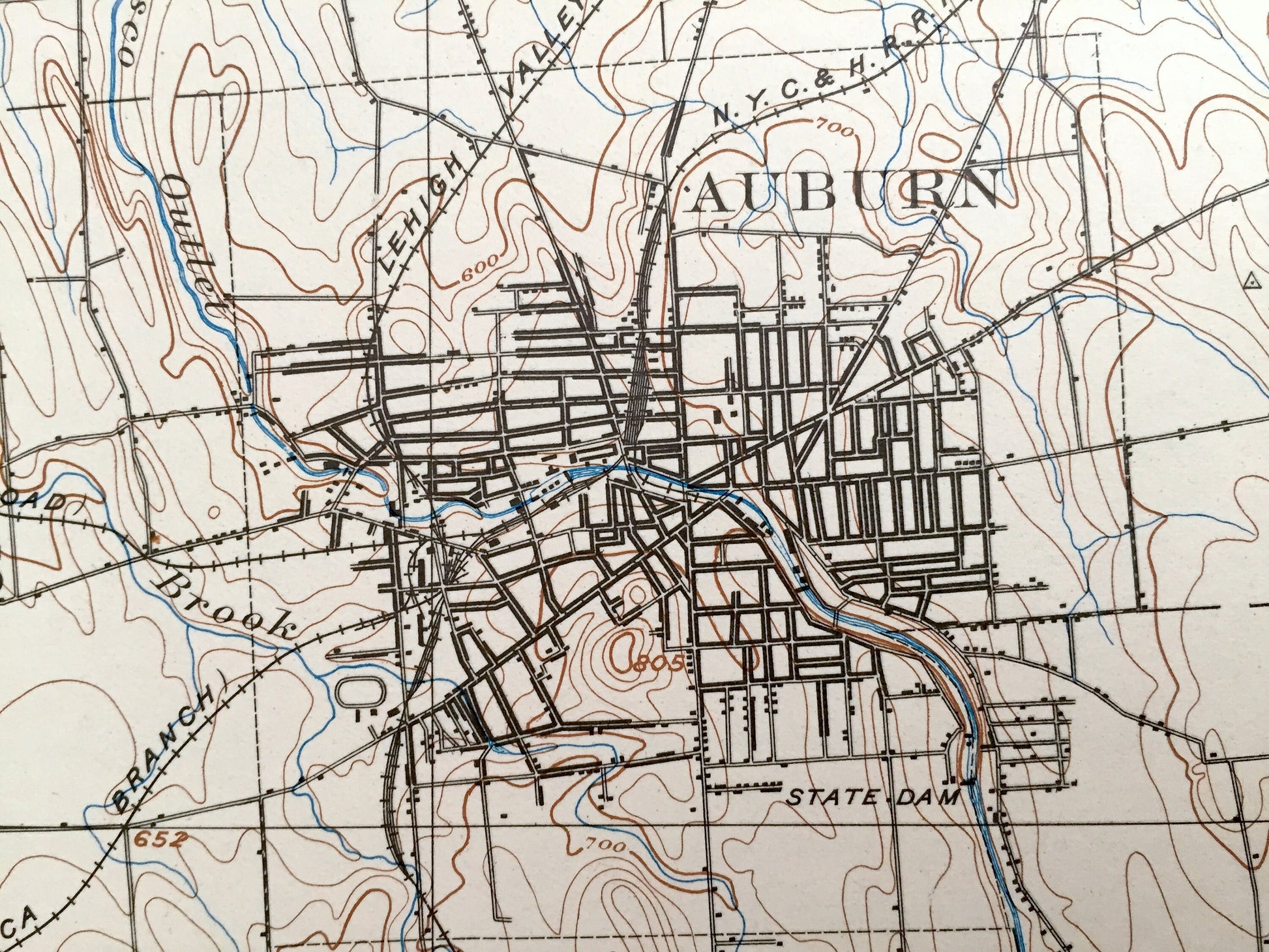 Beautiful, antique map of Auburn, New York and surrounding Cayuga County and Seneca County areas. This is an authentic 1902 edition, 1932 print from the U.S. Geological Survey and NOT a computer reproduction.