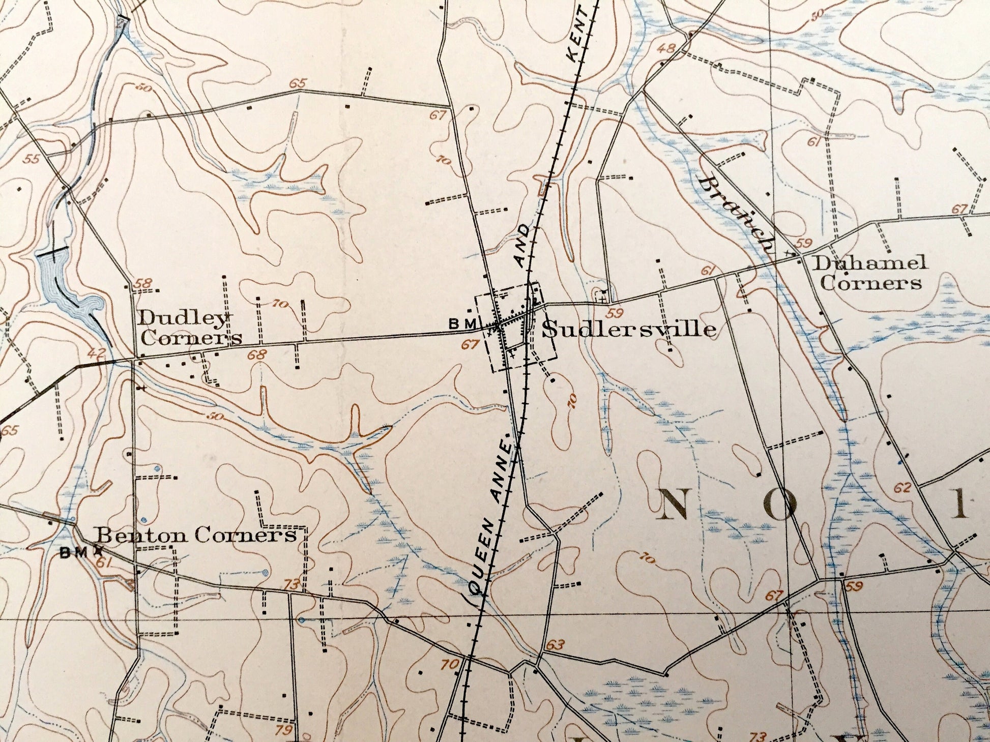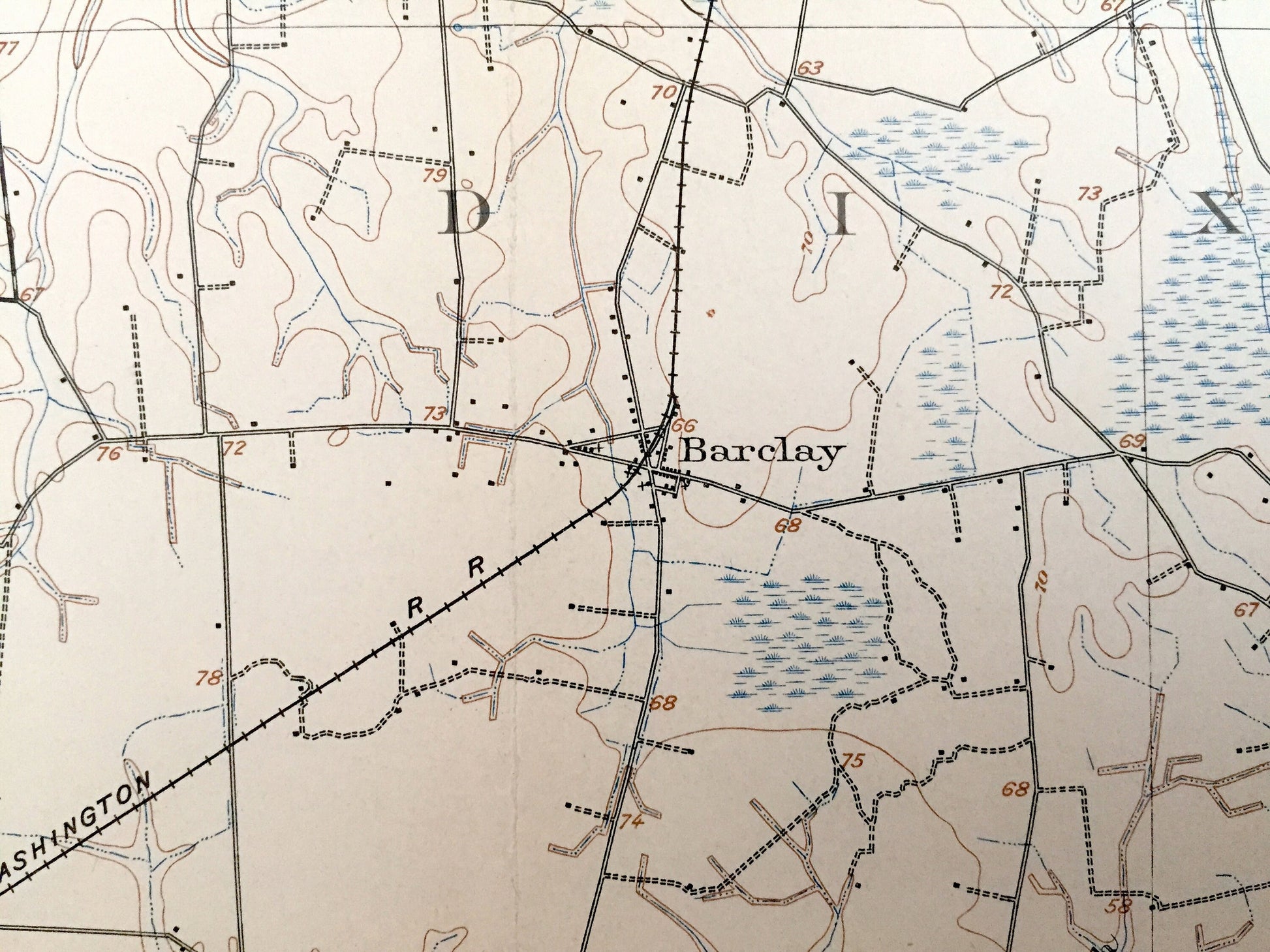 Beautiful, antique map of Barclay, Maryland and surrounding Delaware and Queen Anne, Caroline, and Kent County area. This is an authentic 1905 print from the U.S. Geological Survey and NOT a computer reproduction.