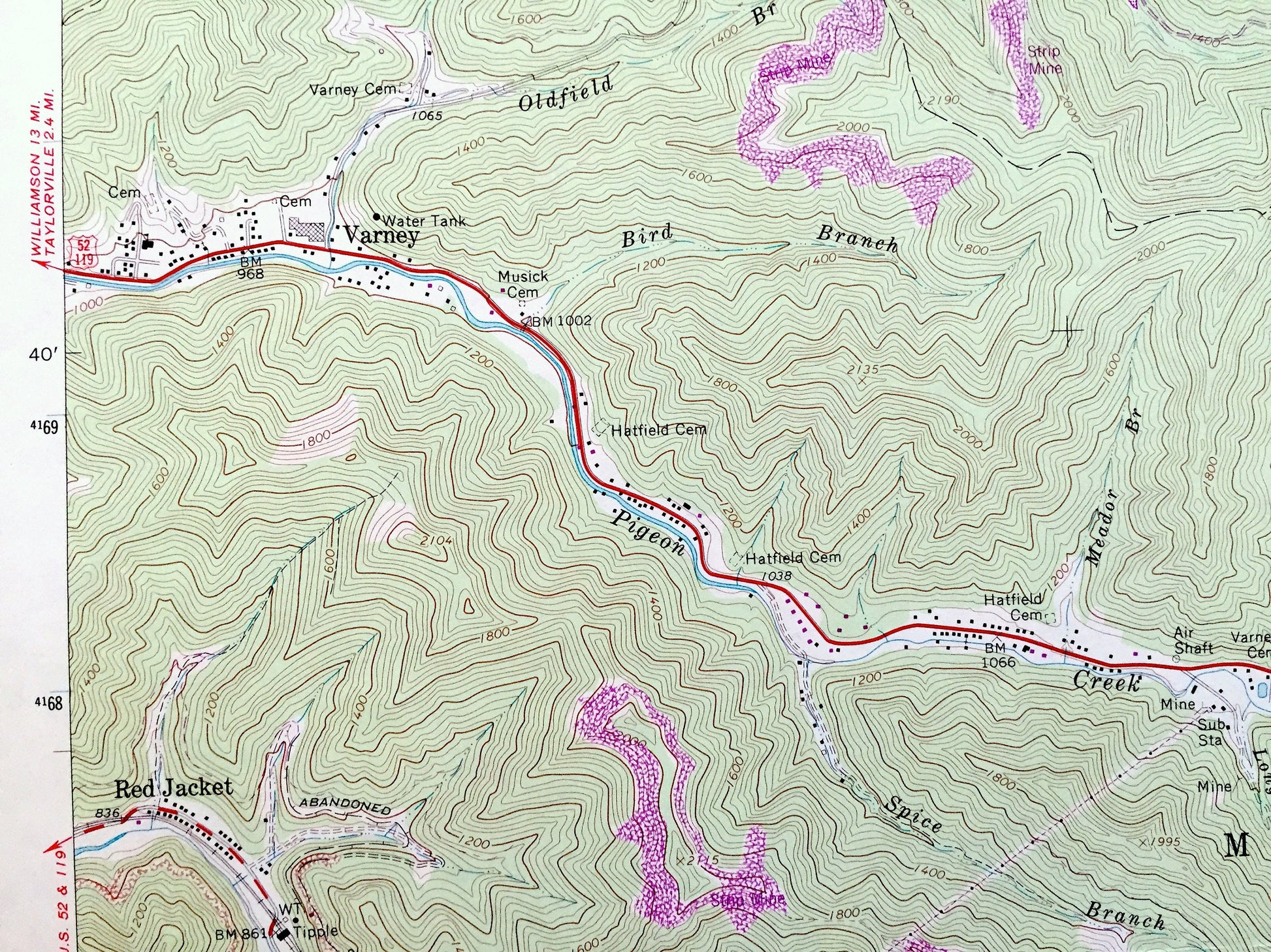 Cities & Towns: Island Creek, Lee, Magnolia, Stirrat, Superior Botton, Varney, Musick, Pie, Newtown, Red Jacket.