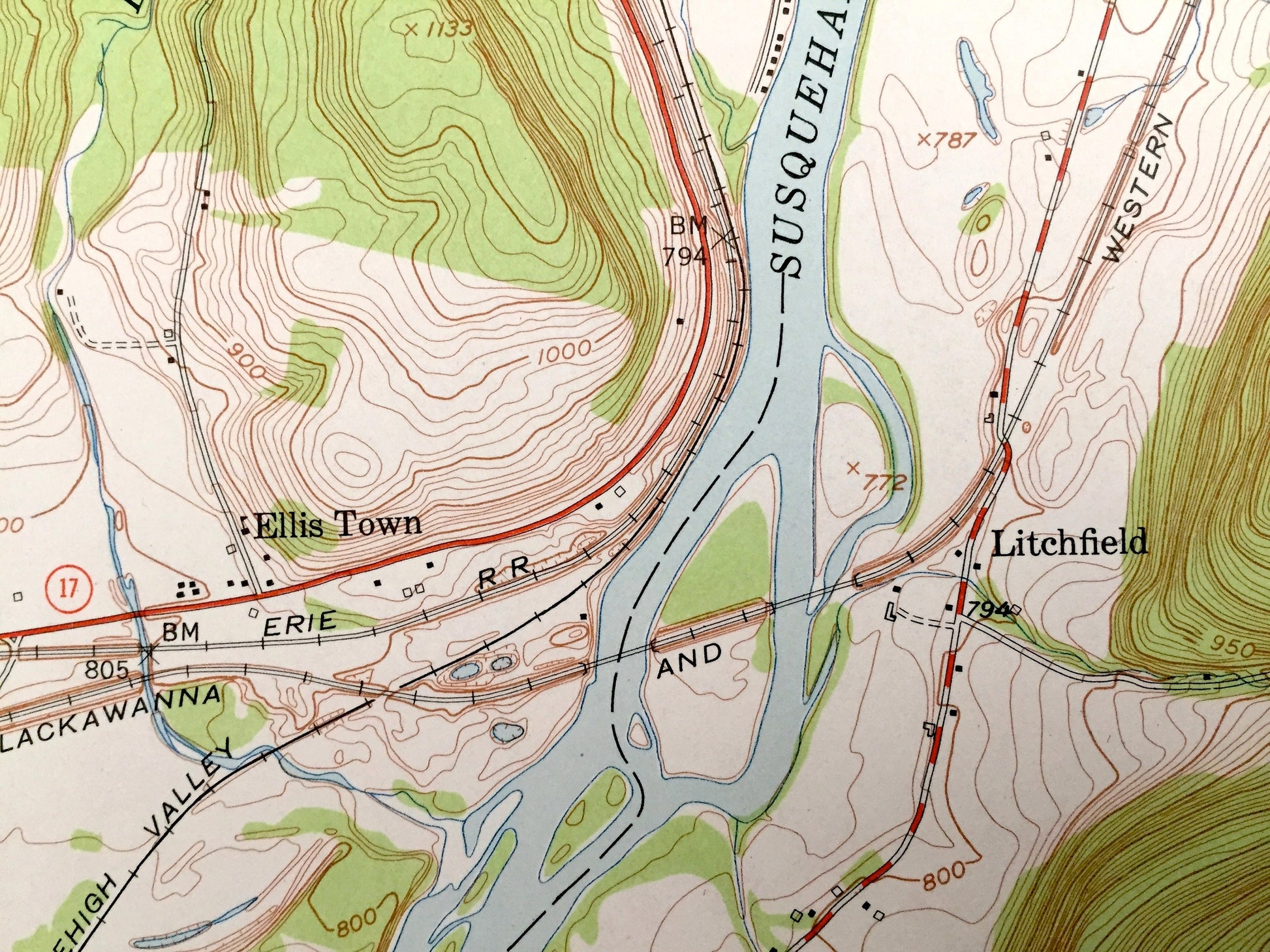 Points of Interest: Susquehanna River, Shipman Hollow, Erie Railroad, Frost Hollow, Delaware Lackawanna & Western Railroad, Lehigh Valley Railroad, Prospect Hill, Diamond Valley, and many more smaller lakes, creeks, mountains, valleys, houses, schools, roads, churches and train tracks.