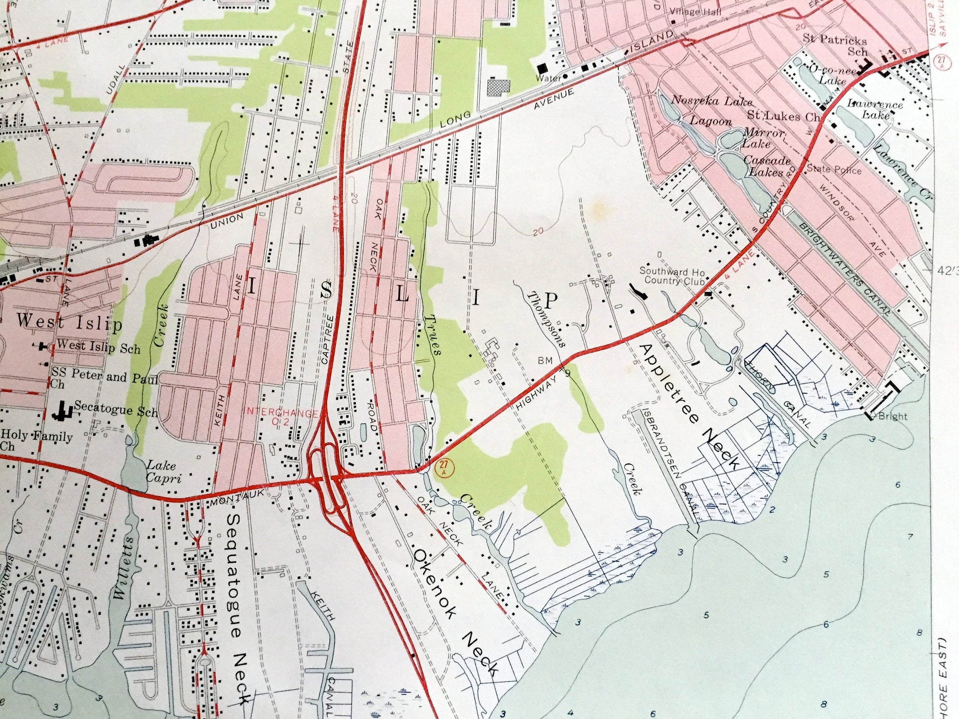See what Long Island looked like over 65 years ago. Lots of intricate details and geological contours. Map even has little squares for every house that existed at the time. The USGS cartographers were very thorough back then!