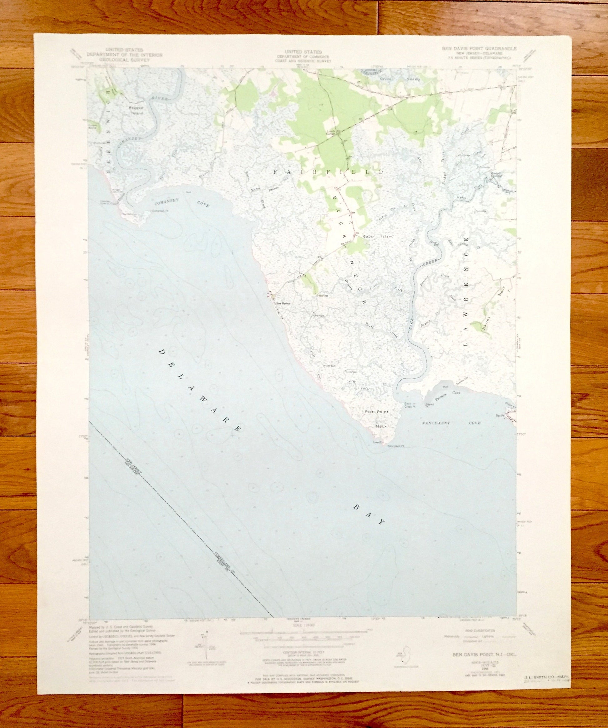 Beautiful, antique map of Ben Davis Point, New Jersey and surrounding Cumberland County areas. This is an authentic 1956 edition, 1972 print from the U.S. Geological Survey and NOT a computer reproduction.