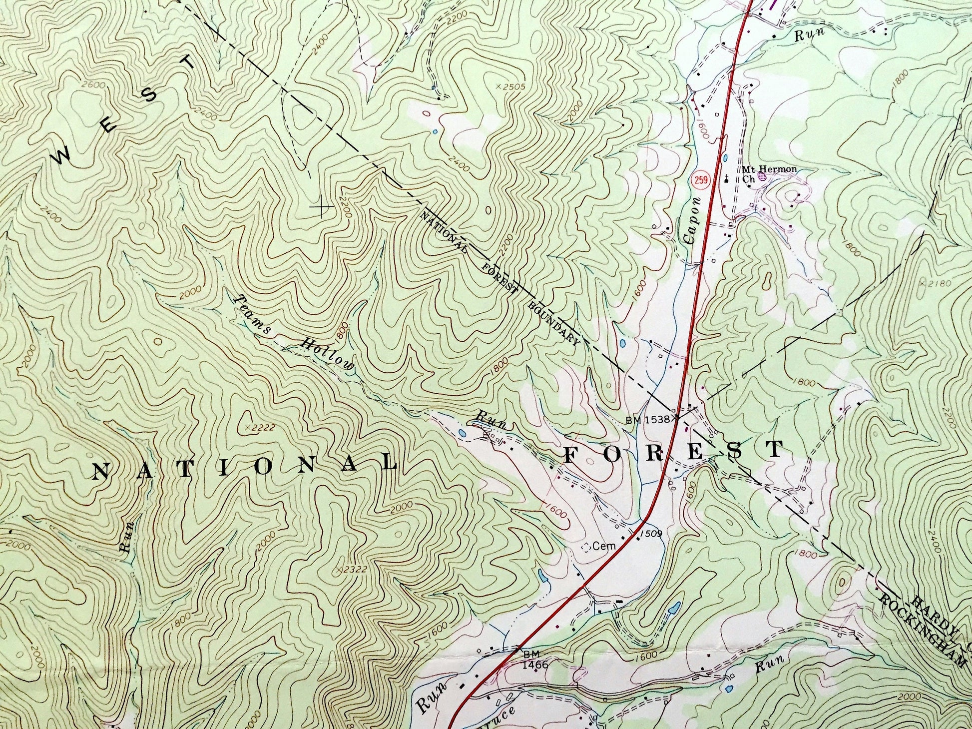 Points of Interest: George Washington National Forest, Shenandoah Mountain, Flattop Mountain, Fallbush Mountain, West Mountain, Mine Mountain, German River, Shenandoah River, Cullers Run, Sirks Run, Crab Run, and many more hills, streams, ponds, houses, schools, railroads, churches and roads.
