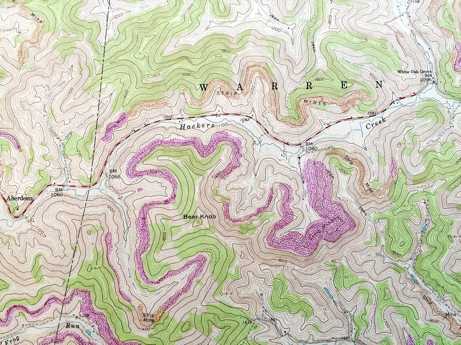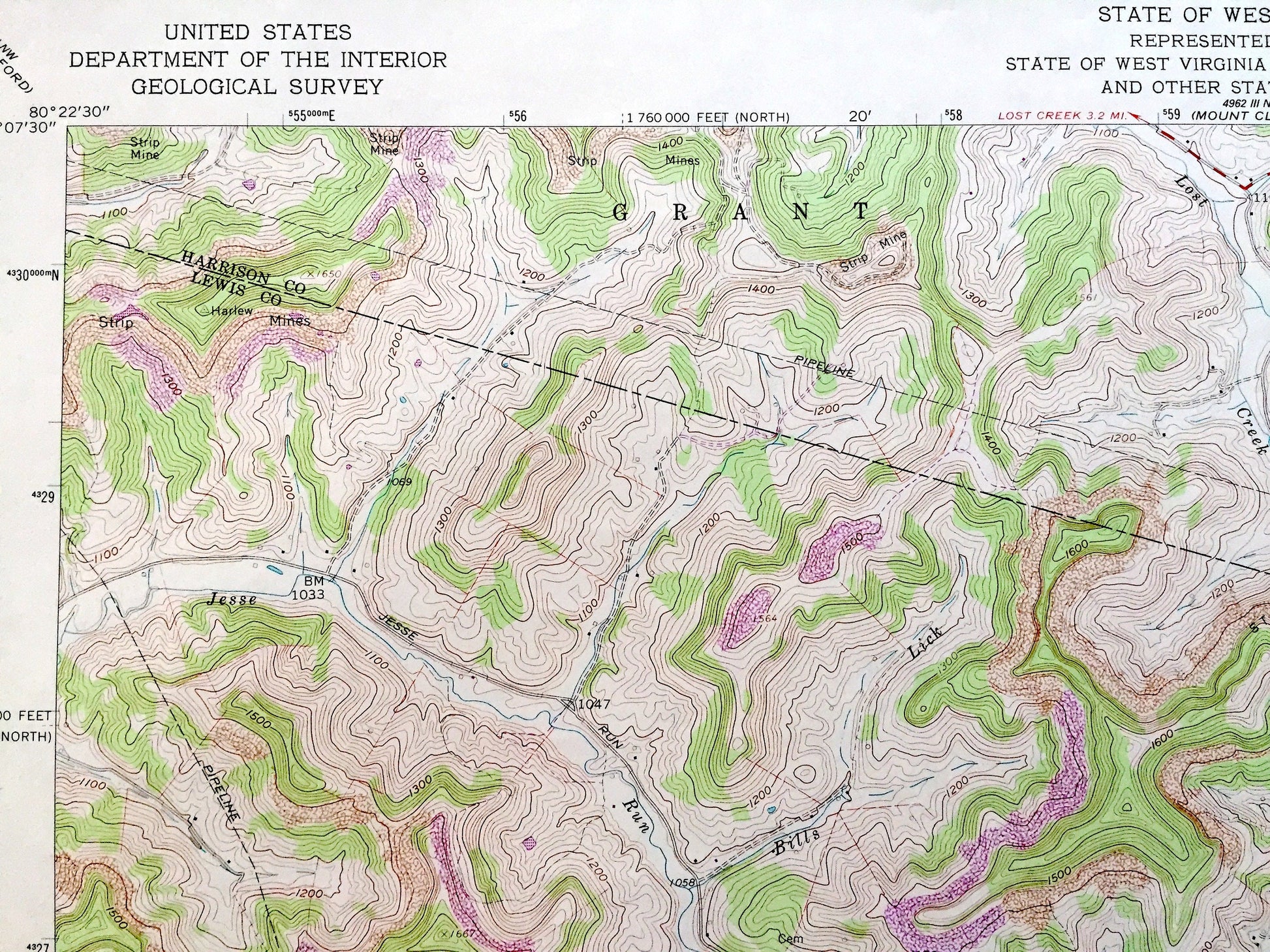 Points of Interest: Bear Knob, Lost Creek, Rooting Creek, Hackers Creek, Buckhannon Run, Laurel Lick, Souls Run, and many more hills, streams, ponds, houses, schools, railroads, churches and roads.