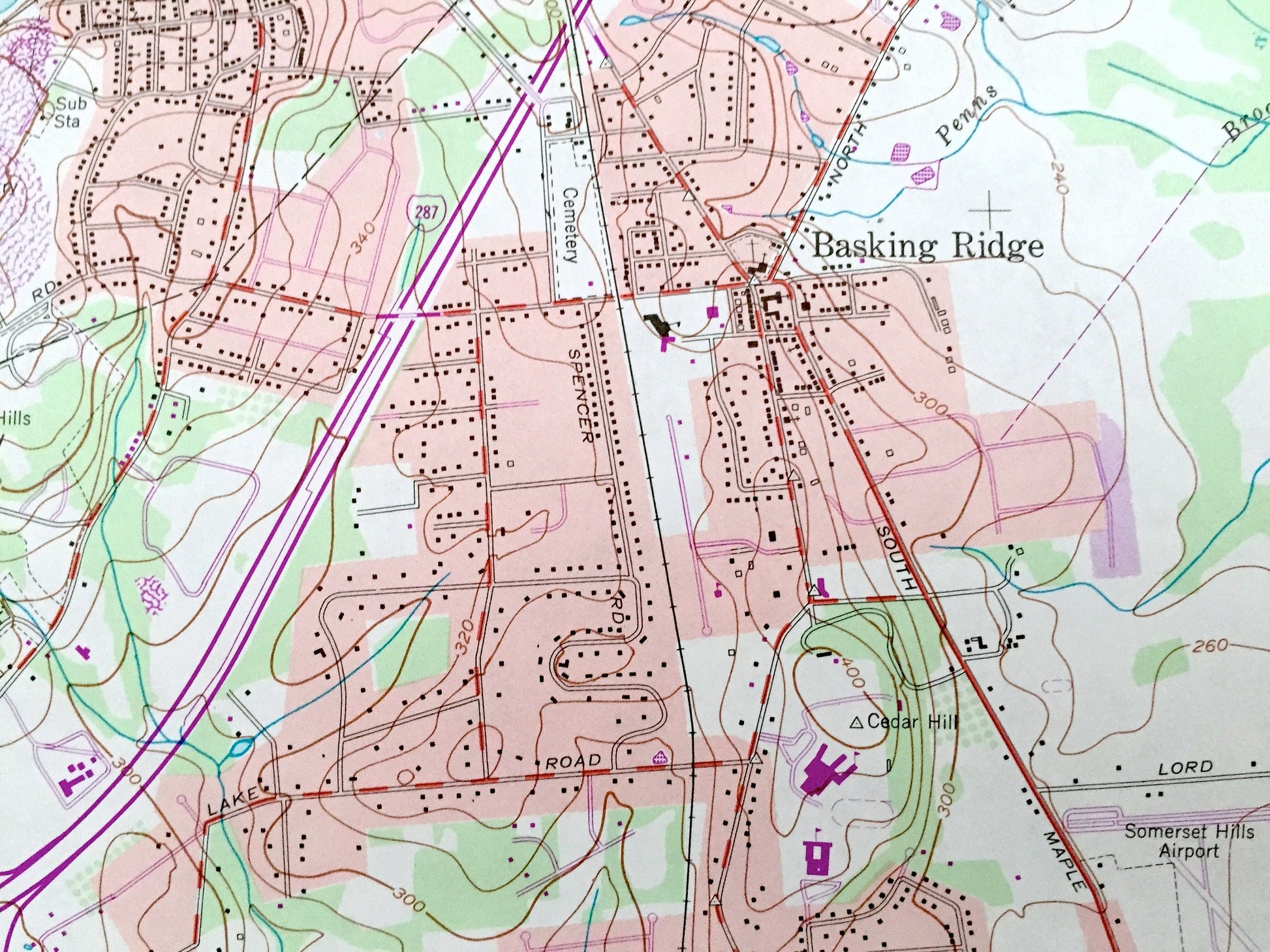 Points of Interest: Somerset County, Morris County, Second Watchung Mountain, Mine Mountain, Long Hill, Passaic River, Great Swamp, Mount Kemble Lake, Great Brook, and many more hills, streams, ponds, houses, schools, railroads, churches and roads.